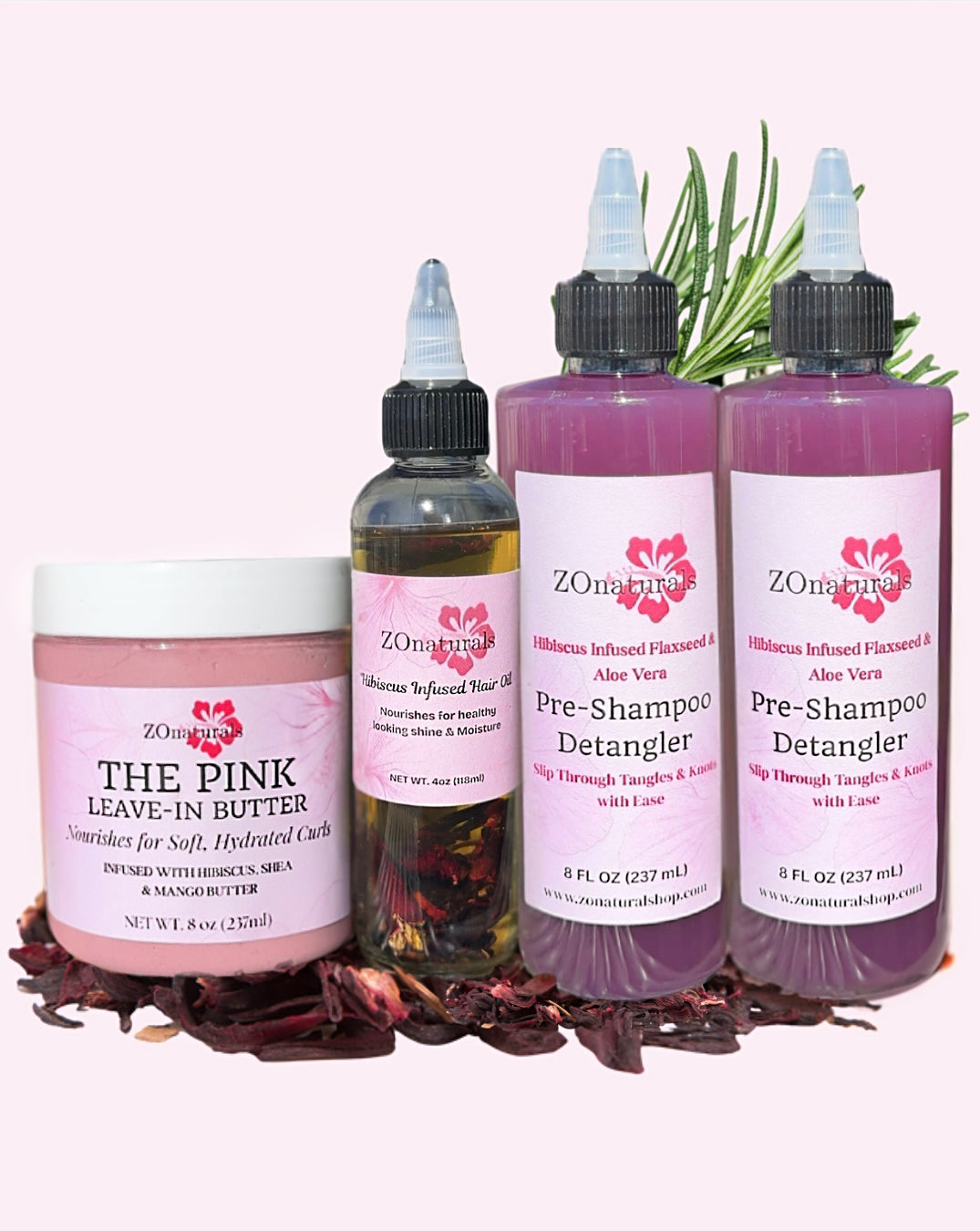 Transform your hair care routine with the perfect bundle designed to nourish, strengthen, and grow your hair. This bundle includes our signature Pink Hair Growth Butter, Hibiscus Infused Hair Oil, and our Pre Shampoo Detangler, carefully formulated to work together for maximum results.